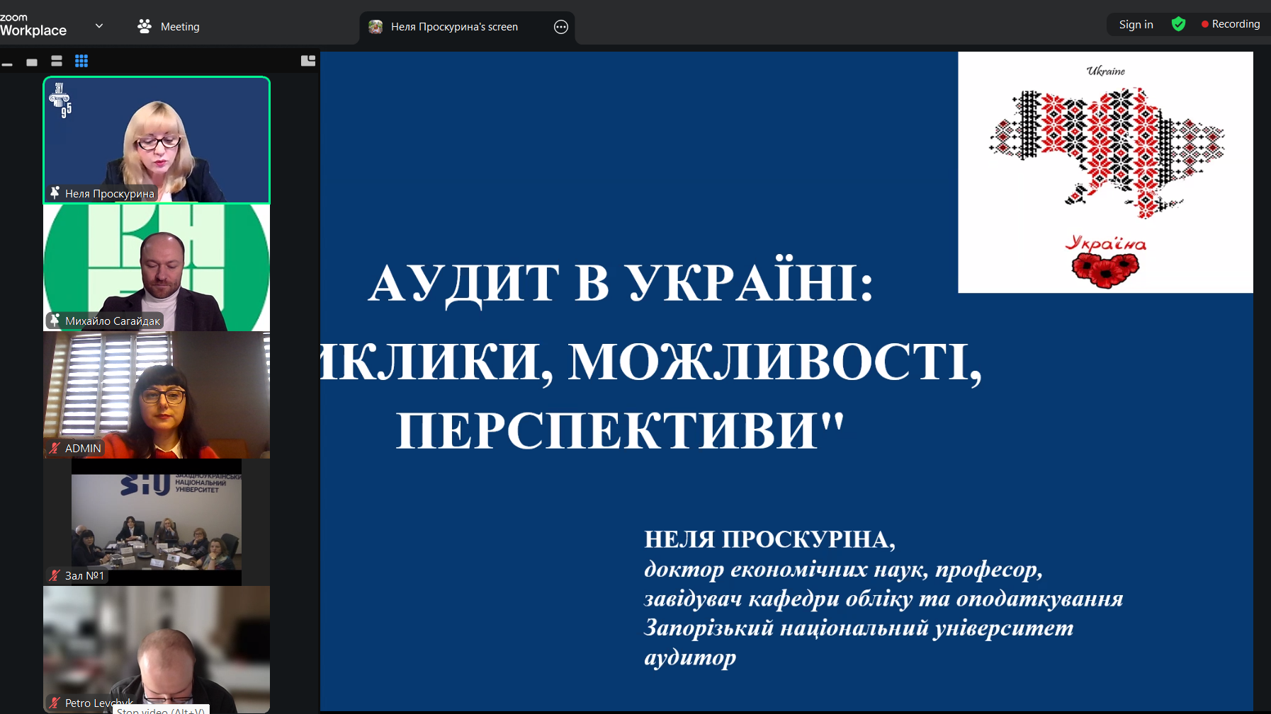 Спікерами наукової дискусії «Аудит в Україні: виклики, можливості, перспективи» виступили д.е.н., професор, завідувач кафедри обліку та оподаткування Запорізького національного університету, сертифікований аудитор Неля Проскуріна (Україна); д.е.н., професор, завідувач кафедри менеджменту Київського національного економічного університету імені Вадима Гетьмана Михайло Сагайдак (Україна); д.е.н., професор кафедри аудиту Західноукраїнського національного університету, сертифікований аудитор, директор-ключовий партнер ТОВ «Тер Аудит» Михайло Лучко (Україна); к.е.н., доцент, науковий співробітник кафедри банківської справи, бухгалтерського обліку та фінансів Бізнес-школи Ноттінгемського університету, сертифікований аудитор Ірина Щирба (Велика Британія).