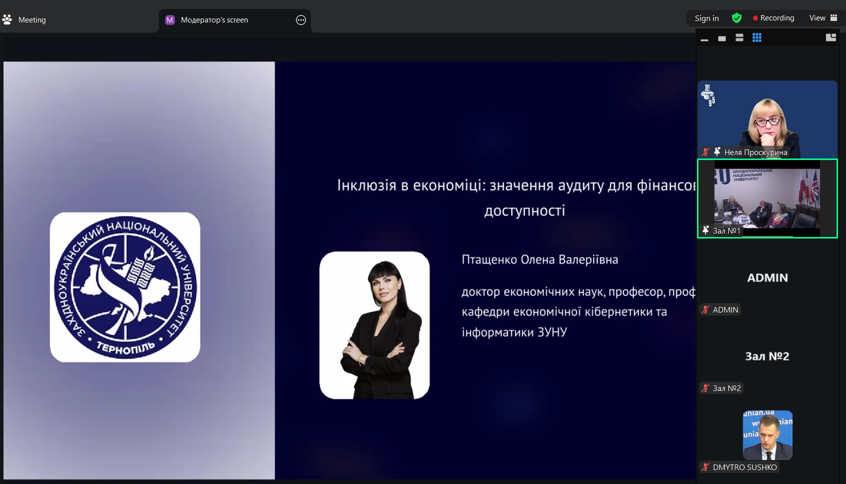 У науковій дискусії «Аудит в системі інклюзивної економіки: можливості і обмеження» спікерами виступили д.е.н., професор кафедри економічної кібернетики та інформатики Західноукраїнського національного університету Олена Птащенко (Україна) та д.е.н., професор кафедри аудиту Західноукраїнського національного університету Аліна Жуковська (Україна).